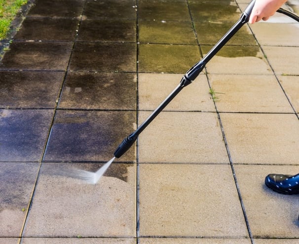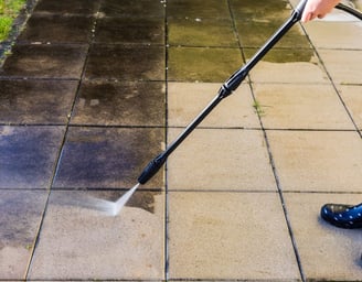 Élimination des taches de moisissure, d'algues et de saleté incrustée sur les dalles, les pavés, le bois composite ou le bois naturel.